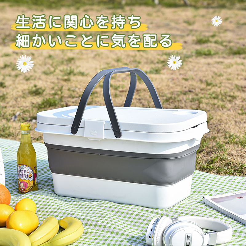【折りたたみ式で収納も簡単】使用時は容量が大きく、折りたたむと高さが9.5cmになり、小さな隙間に収納可能。持ち運びにも便利です。
