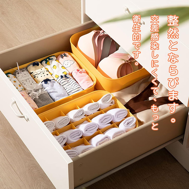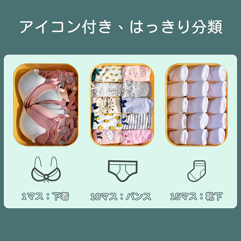 10/15仕切り収納ボックスなので、収納力が強く、乱雑になりがちな下着、靴下やブラジャーを分類してきれいに収納。