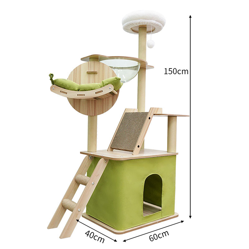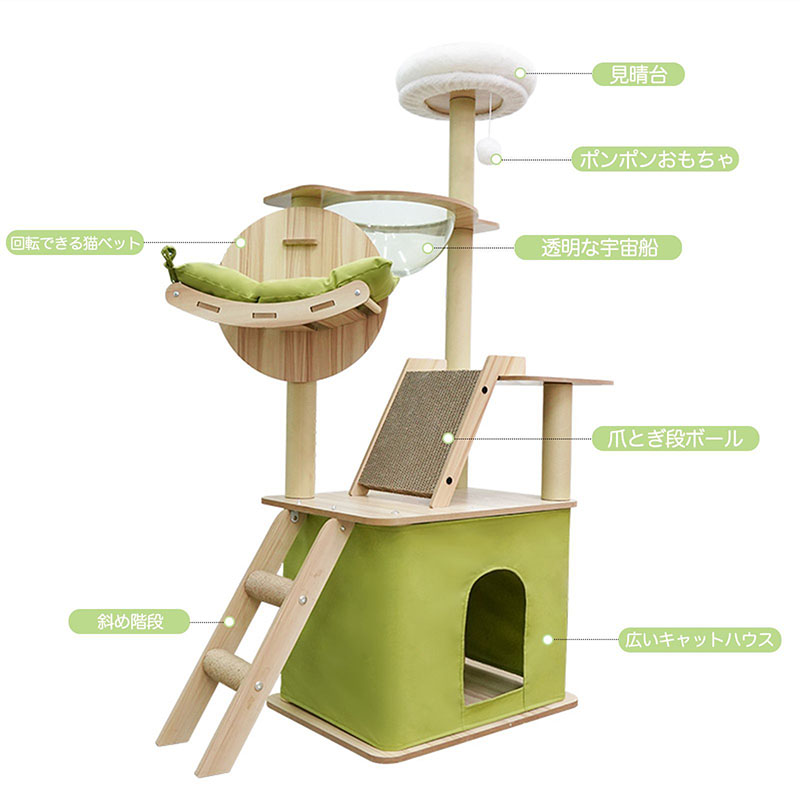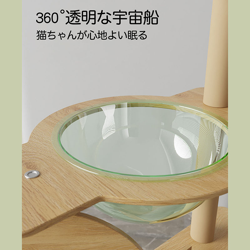 キャットタワーにはサイザル研削の爪が付いた階段、透明な宇宙船、休憩用の猫の巣、最上階のふわふわパッドが装備されています。
