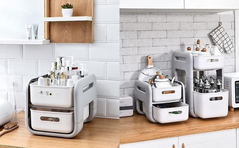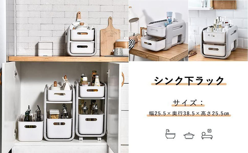 引き出し式・2段式で扉タイプのシンク下など狭い空間を有効利用可能な収納ラックです。
