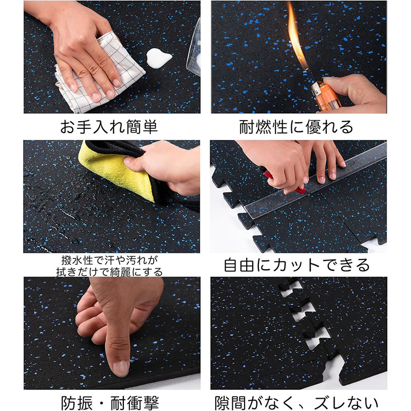 表面が合成ゴムなので滑りにくい特徴があります。EVA層のマットと組み合わせているため、防音性にも優れております。