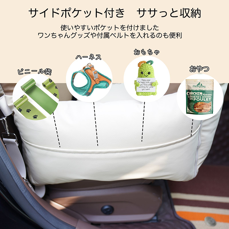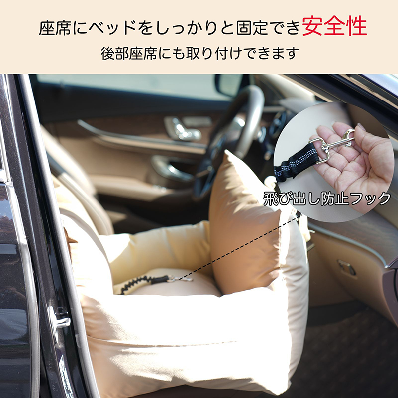安定感 !さらに、シート内部にも飛び出し防止フックがあり、安心してペットと車で移動できます。