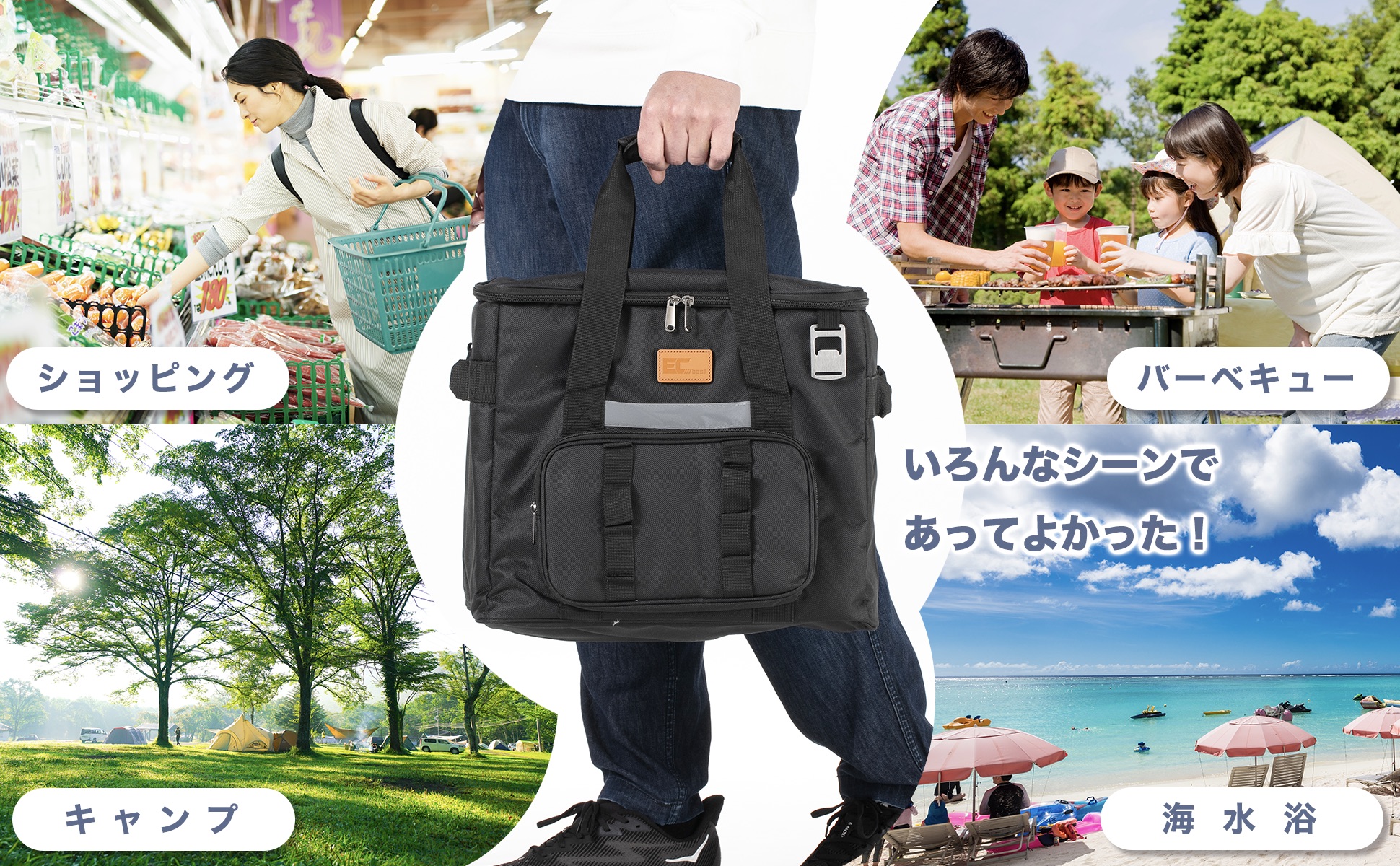 【様々なシーンで活躍オールシーズン仕様】保冷・保温のどちらにも使える保温バッグとして、キャンプや釣り、BBQといったアウトドアレジャーはもちろん、スポーツ、お花見、運動会、花火大会、日頃の買い物カートとしてもオールシーズンで大活躍できます。
