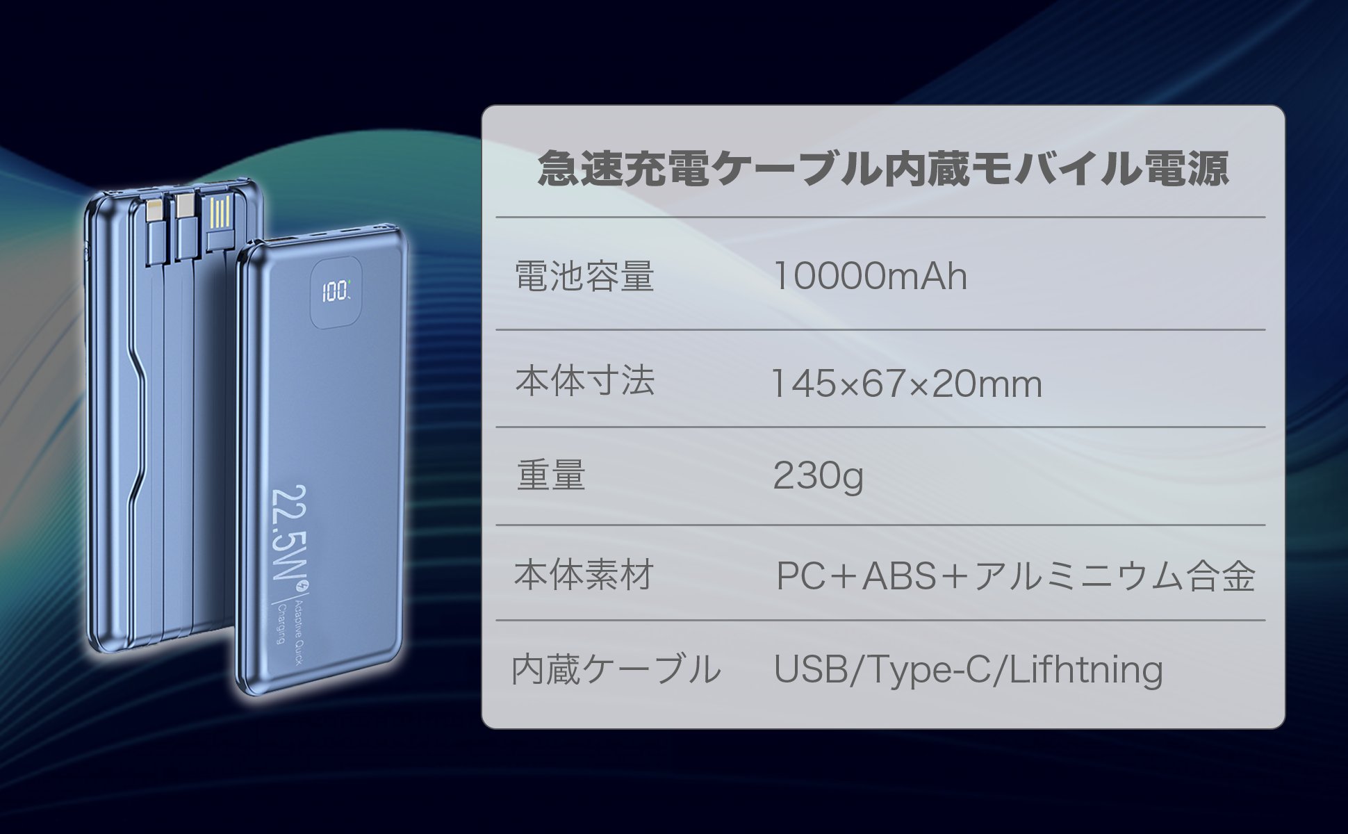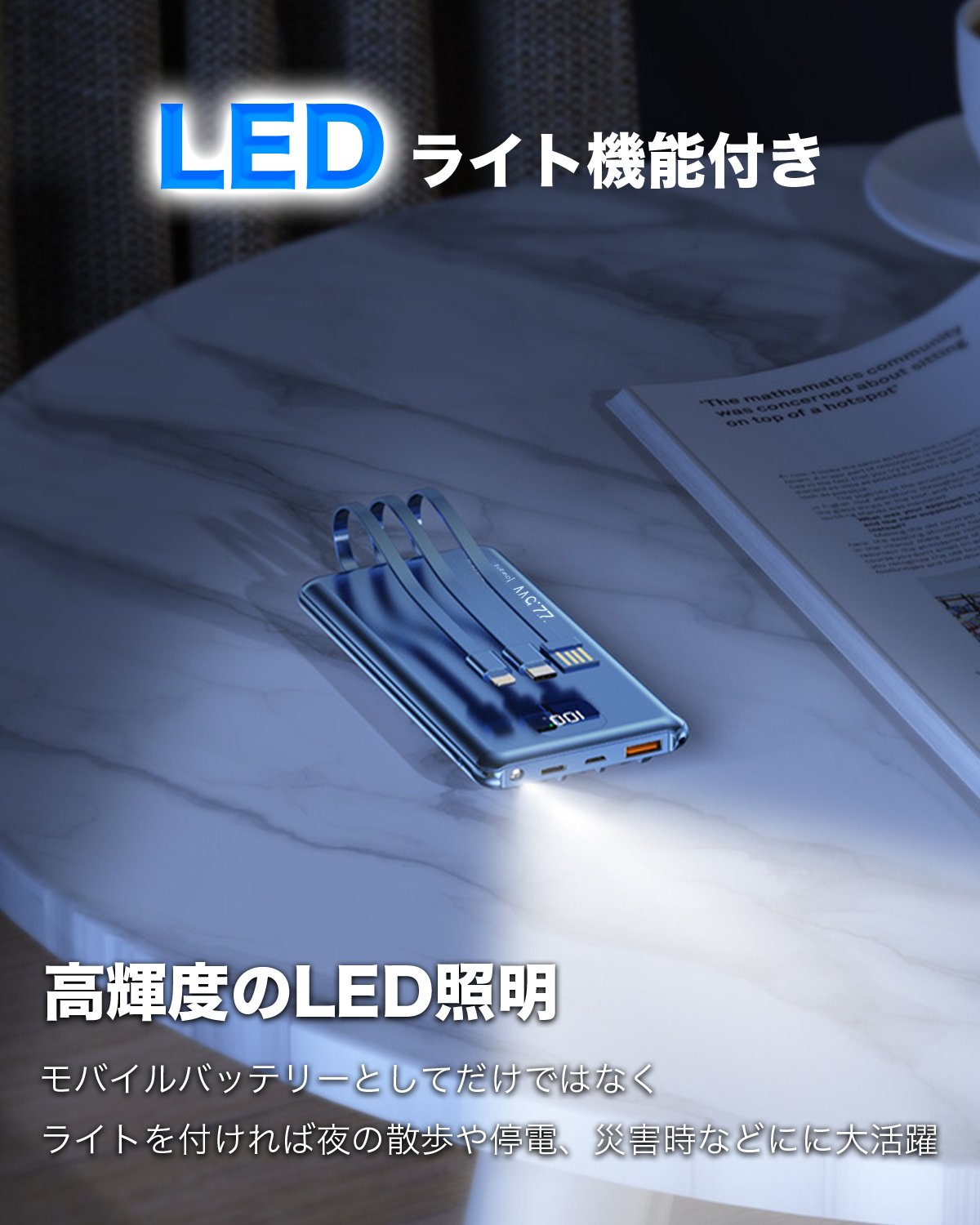 高級感に溢れている鏡面仕上げのデザイン&洗練されたお洒落デザインで、一目惚れのモバイルバッテリーです。ボディには汚れ・キズを抑える表面加工が施されているほか、難燃性と放熱性にすぐれた素材を使用しており、安全性を確保しつつ、熱によるバッテリーの劣化を抑えられます。または、本体にはLED照明が内蔵され、夜の散歩や帰宅の際は懐中電灯としても利用できますし、非常時の電源や照明としても利用できる。LCD液晶ディスプレイを備えており、バッテリーの残量を1%単位で正確に表示され、バッテリー残量と急速充電状態が一目瞭然で、充電のタイミングもより掴みやすくて便利です。もう充電切れの心配も要りません