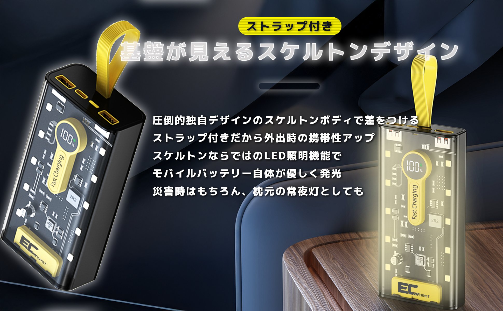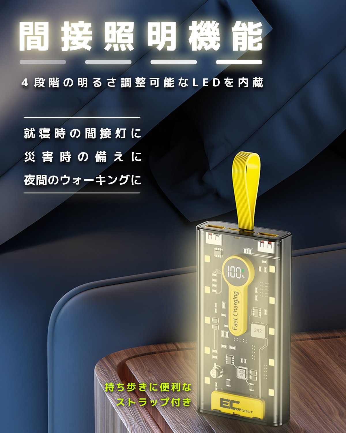 【コンパクトのデザイン&LED電量残量表示&間接照明機能 】