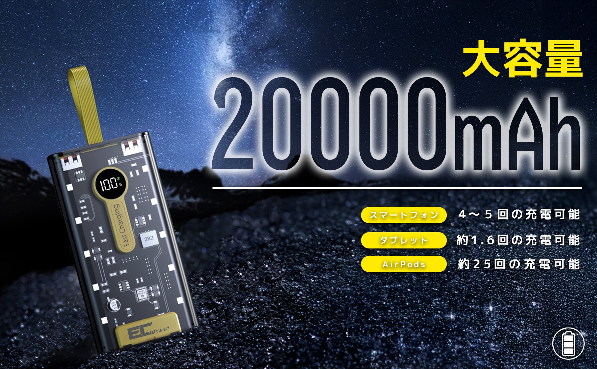 【たっぷり使えるウソのない大容量20000mAh】