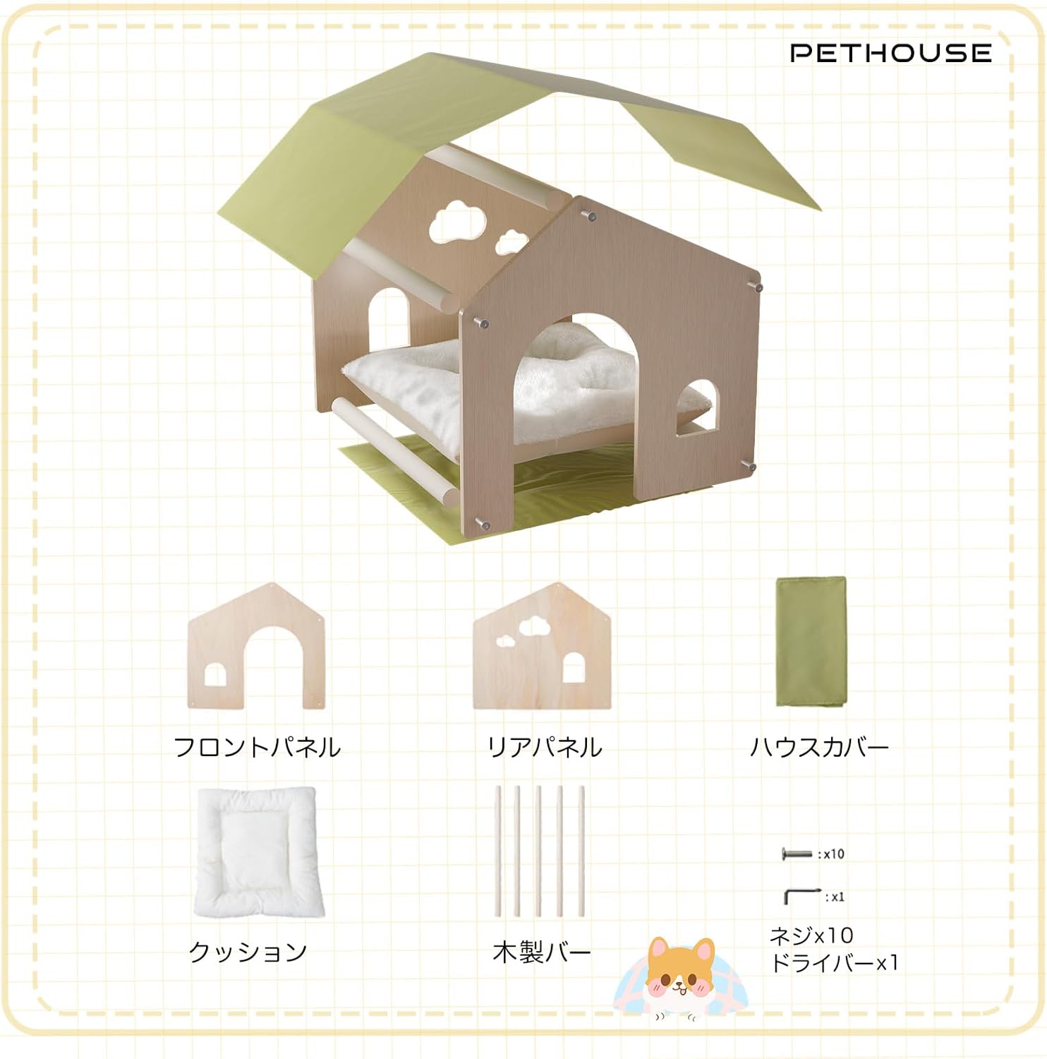 - 【組立簡単&多層無垢】このペットハウスは組み立てが簡単で、特別な工具や複雑な技術は一切不要!女性の方でも一人でらくらく組み立てられ、開梱から完成まで20分以内で、毛皮の赤ちゃんに快適なスペースを用意できます。天然無垢の多层材を使用し、塗装や接着剤を一切使わない环保設計で、ペットが噛んでも心配不要でお使いください。