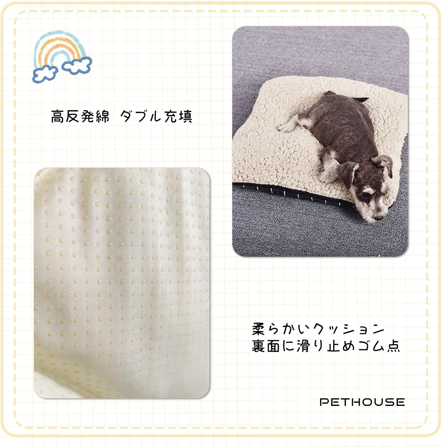- 【抜群な通気性と防湿性】乾燥で清潔なペット屋は、毛皮の赤ちゃんの健康にとって非常に重要です。このハウスはまるで呼吸するかのような換気システムを特別に設計しており、持続的な空気循環により、湿気が原因の皮膚トラブルを効果的に防ぎます。雨の季節でも夏季でも、ベッド内はいつもサラッとした快適な状態を保ちます。柔らかなクッションは体温を保持して冬の寒さを防ぎながら、優れた通気性で夏の蒸し暑さも軽減。季節の変わり目にペットベッドを取り換える手間を省き、ペットが一年中快適に過ごせるお気に入りのスペースになります。